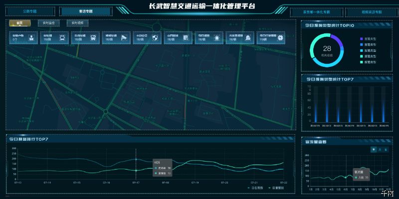 智慧交通管理平臺項目的開發,詳細要求如下:智慧交通IOC定制開發,具體開發內容為:面向指揮中心大屏定制開發展示主題,至少包含資源一張圖、公交主題、公路主題、交通運輸主題等4個方面,每個主題定制開發內容不少于5個展示頁面。其中,資源一張圖需定制開發展示交通路網、道路視頻監控、公交總覽、交通運輸總覽、公路維護總覽等,公交主題需定制開發展示公交線網、司機人員、運營信息,公路主題需定制開發展示公路資產、維護信息、道路巡查,交通運輸主題需定制開發展示總覽、客貨郵信息、快遞信息等。